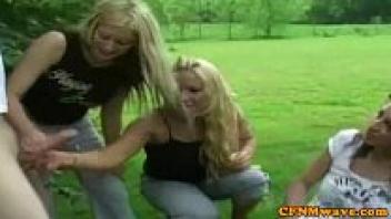The lucky dude's CFNM dominant mature and chick group suck cock