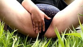 Outside, the obese mother-in-law pooped through her new underwear while spreading her legs wide.