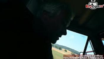 Grandpa picks up a German teenager on the street and loves her in the car.