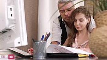 Boss taking advantage and misusing hot secretary on business trip