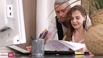 A cute brunette secretary's kinky boss rapes her ass