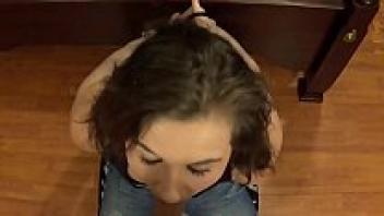 In the video, the adorable girlfriend performs an erotic blowjob and swallows cum.