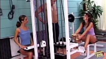 In the gym, two Czech brunettes enjoy exercising and engaging in anal intercourse.