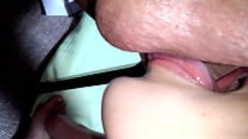 I love to wear bondage gear for my stepdad - passionate sex and pussy licking