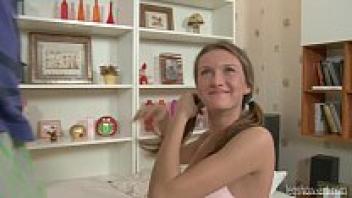 Petite teen Kristen Scott sampling her lesbian girlfriend Aidra Fox's trimmed pussy.