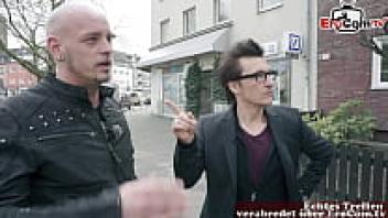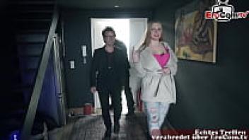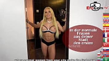 Public recognition of a German blonde big-titted milf during a street flirt