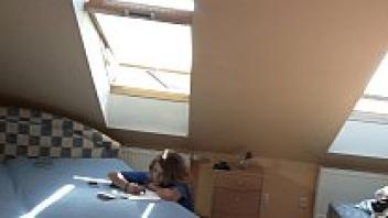 Anna, a hot and sultry Erasmus girl, wearing a miniskirt and missing her underwear