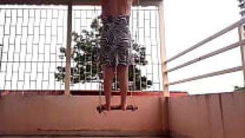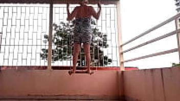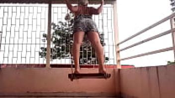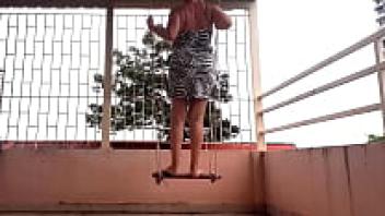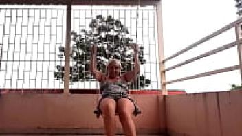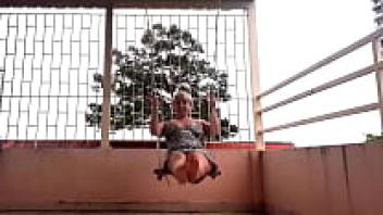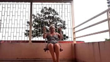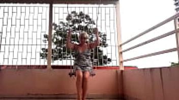 Swinging with underwear on a swing upskirt, a depraved housewife