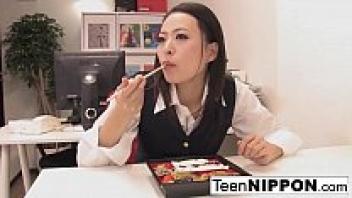 A Japanese office chick is loved and has her hairy pussy toyed.