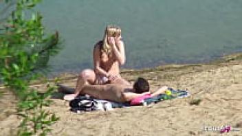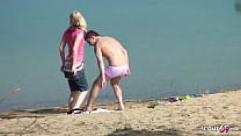 Strangers fall in love with a real teen couple on a German beach.