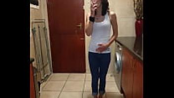 Pissgirl smoking, stripping, and urinating in her jeans