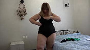 Behind the scenes, a mature BBW gets dressed up. Foot fetish and juicy PAWG in pantyhose or nylon stockings