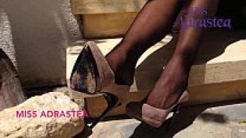 Foot fetish. The domineering Mistress's feet are kissed and licked by the slave. The slave spit in his mouth.