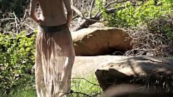 MILF, who is early in her pregnancy, goes naked outside. Natural female beauty in nature. Amateur fetish.