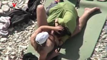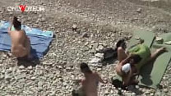 Voyeur Beach. Unabashed nudists having sex next to other people on the beach