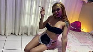 For her boss, the maid smokes and masturbates.