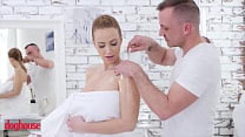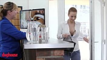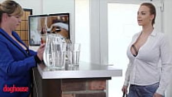 In Dog House, a Czech hound with enormous titties (Jenny Wild) drains the juice from that large cock.