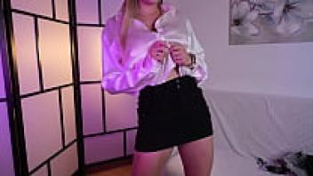 Sexually, Stella jerked off her cock and smeared oil on her tits.
