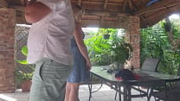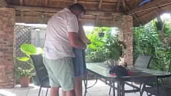 While my best friend is at work, Creampie is shown adoring his wife on the patio.