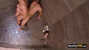 sultry softcore sex with a novice beginner swinger couple in the shower.