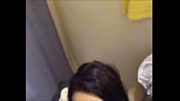 blowjob with deep slobbery from a stunning brunette wearing red underwear