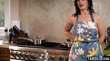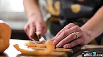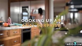 Siri Dahl, an anal lover and MILF stepmother, cooking dinner on her stepson's cock