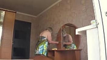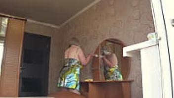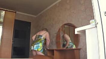 Through the open window, the neighbour observes the plump milf. PAWG.
