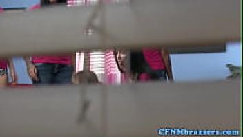 Busty cfnm blonde students