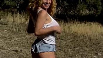 Outdoor masturbation with large natural tits