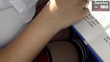 xSANYANY, a HANDJOB CLASSMATE, is seated under the table regarding the lesson.