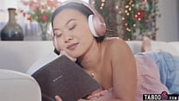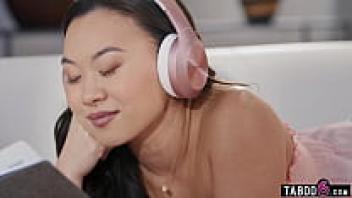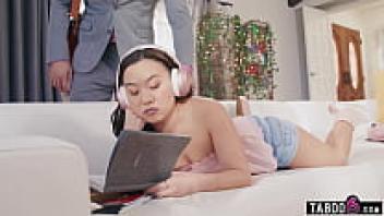 When her husband loves her, the Asian teen babysitter squirts on his large cock.