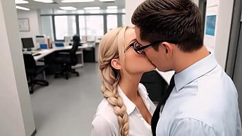 A brand-new, attractive, blonde secretary who adores her coworkers (AI-Generated)