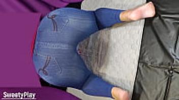Pissing with a vibrator while wearing jeans