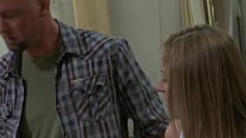 At the bathtub, a mature couple and a teenager are in love.
