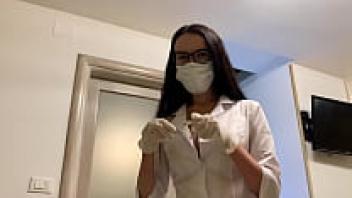Sex therapy was arranged by a hot nurse wearing latex gloves.