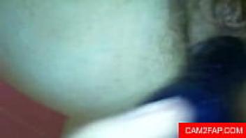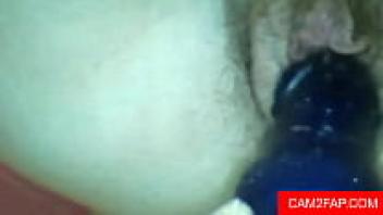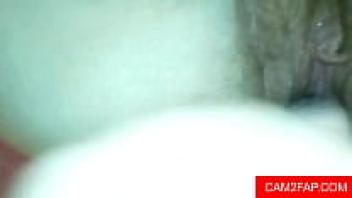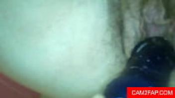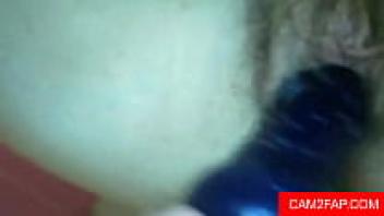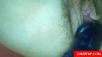 Willow, an amateur, rubs her hairy pussy together.