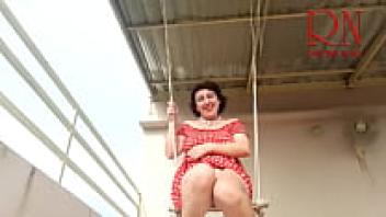 On the swing, a depraved cute housewife enjoys herself without underwear. Babe displays her flawless pussy while swinging. erotic. slow motion. Cunt in close-up. Raise your skirt. Upskirt pussy without underwear. Outside, no underwear. C 2