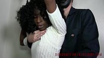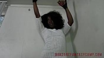 Ebony's tight little tits in gadget bondage