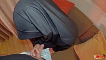 A gigantic cock is sucked by an Arab woman.