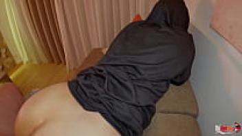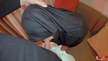 The penis is inserted into her ass by an Arab Sex Muslim wearing a hijab at :53