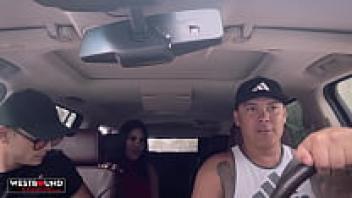 Busty Latina Babe Kesha Ortega adores Guy in the Backseat of Car.