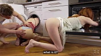 They got stuck in the kitchen, so I assisted them with my enormous cock.