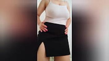 Big tits are played with by a busty cutie wearing a seductive dress.