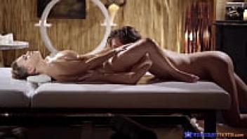 Cum on these greased up large natural tits - massage rooms.