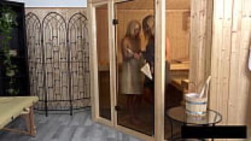 In the sauna, Sexy Beauty enjoys spending time with a stranger that she likes.