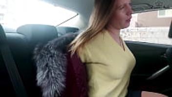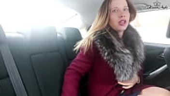 Cute Bitch Jerks Off Wet Pussy During Taxi Ride | Fetish