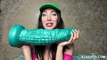 Hotkinkyjo in pink fishnet fisting and loves her ass with gigantic dildo from Mr. Hankey, gape, and anal prolapse.