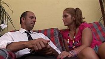 The filthy old swine looks at her young and babety.