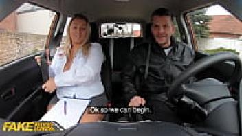 Fake Driving Instructor with Big Natural Tits enjoyed POV.