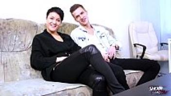 When a stranger cum on her pussy, a redhead with short hair is having delight.